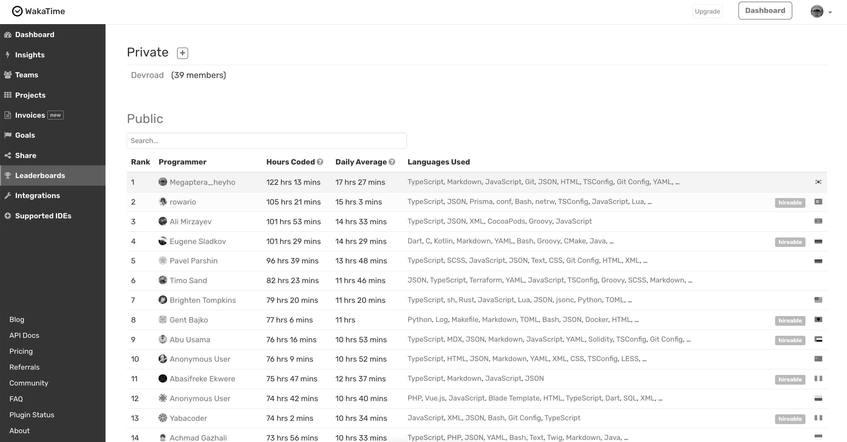 개발 실력과는 무관하게 단순 타이핑 시간만을 기록합니다.